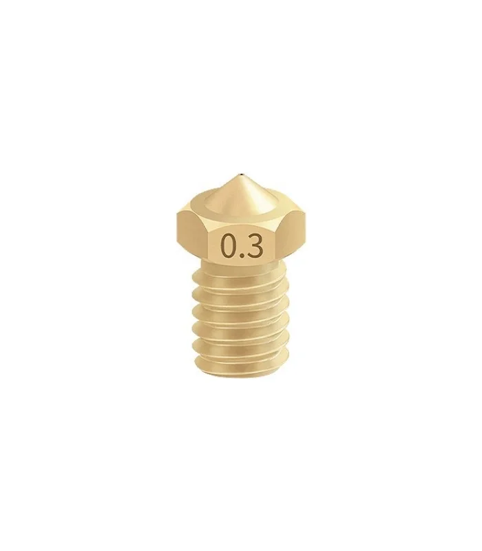 Nozul, 3D yazıcının filamenti eritip katman katman bir nesne oluşturmasını sağlayan kritik bileşendir. Termal performansı iyileştirmek için optimize edilmiş ve filament akışını düzgün, istikrarlı hale getirmek üzere tasarlanmıştır. Bu sayede daha iyi detaylandırma, pürüzsüz yüzeyler ve yüksek hassasiyetli baskılar elde edilir. 0.3 mm çıkış çapına sahip olup birçok 3D yazıcı modeliyle uyumludur.