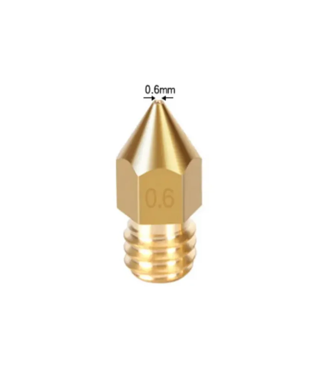 MK8 nozzle modelidir. 0.6mm çıkış çapına sahiptir. Pirinç yapısı sayesinde hızlı ısınır ve hızlı soğur. Creality Ender-3, Ender-3 Pro, Ender-3 V2, Ender-3 Max, Two Trees Bluer, Two Trees Sapphire Pro, Tevo Tarantula, Anet A8 vb. cihazlarla uyumludur.