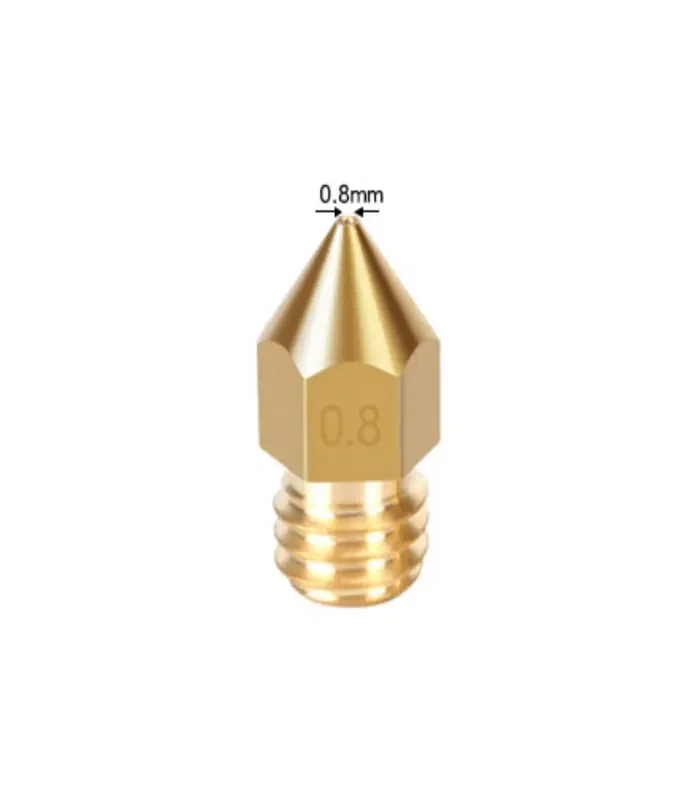 MK8 nozzle modelidir. 0.8mm çıkış çapına sahiptir. Pirinç yapısı sayesinde hızlı ısınır ve hızlı soğur. Creality Ender-3, Ender-3 Pro, Ender-3 V2, Ender-3 Max, Two Trees Bluer, Two Trees Sapphire Pro, Tevo Tarantula, Anet A8 vb. cihazlarla uyumludur.