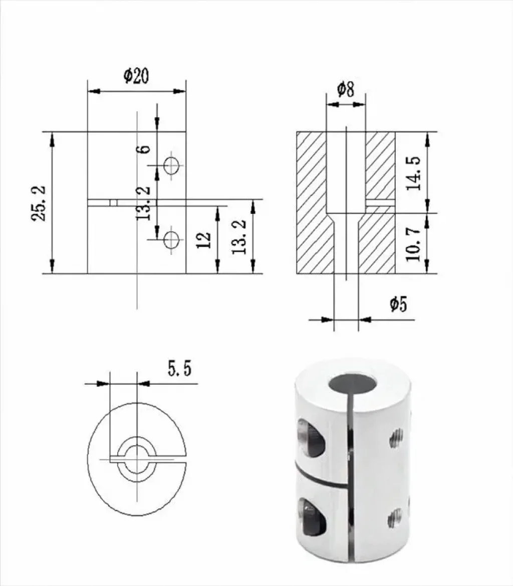 1 Adet 3D Yazıcı 5x8mm Rigid Kaplin - CNC Uyumlu