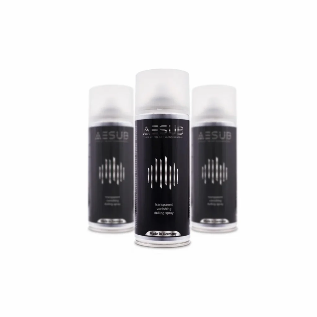 d) Yüksek Kalite ve Hassasiyet: En yüksek kaliteli ve hassas ölçümler için, taranacak nesnenin yansıma özelliklerinde, dokusunda ve renginde farklılıklar gibi engelleri ortadan kaldırmak için tarama spreyi kullanılması gerekmektedir. AESUB Şeffaf Tarama Spreyi, yansımaları ve homojen olmayanlıkları azaltan mat, homojen bir kaplama oluşturur ve bu da mükemmel tarama koşulları sağlar.