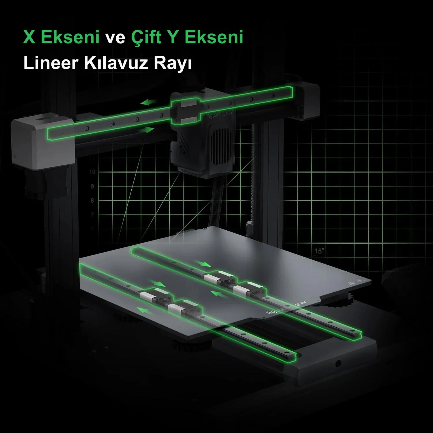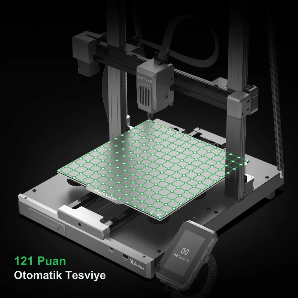 Artillery Sidewinder X4 Plus, 300x300x400 mm baskı boyutu ile büyük projeleriniz için ideal bir çözüm sunar. Geniş baskı alanı, daha büyük ve karmaşık tasarımlar oluşturmanıza olanak tanır.