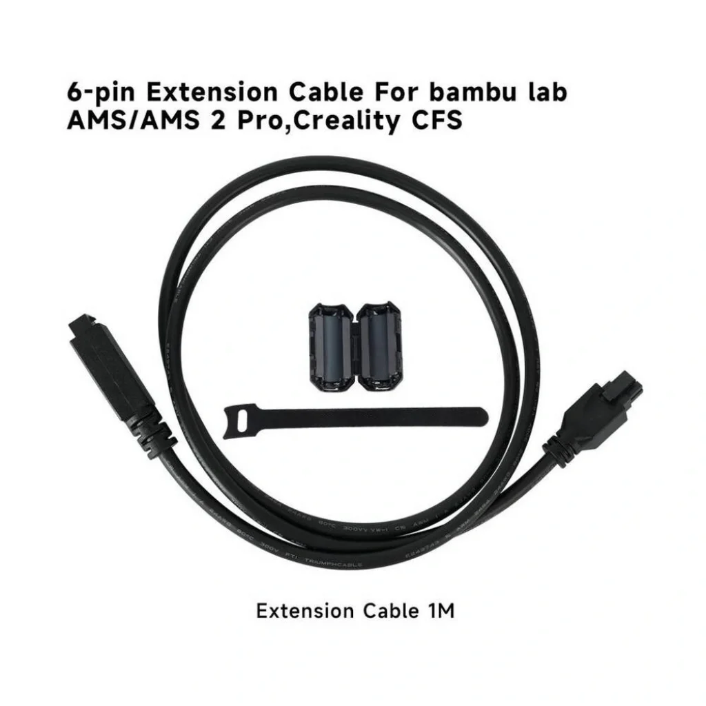 “Bambu Lab AMS 6-pin Extension Kablo” 1 metre uzunluğunda; 6-pinli AMS sistemine, AMS Pro’ya ve hatta bazı modellerde Creality CFS gibi sistemlerle uyumlu bir uzatma kablosudur.