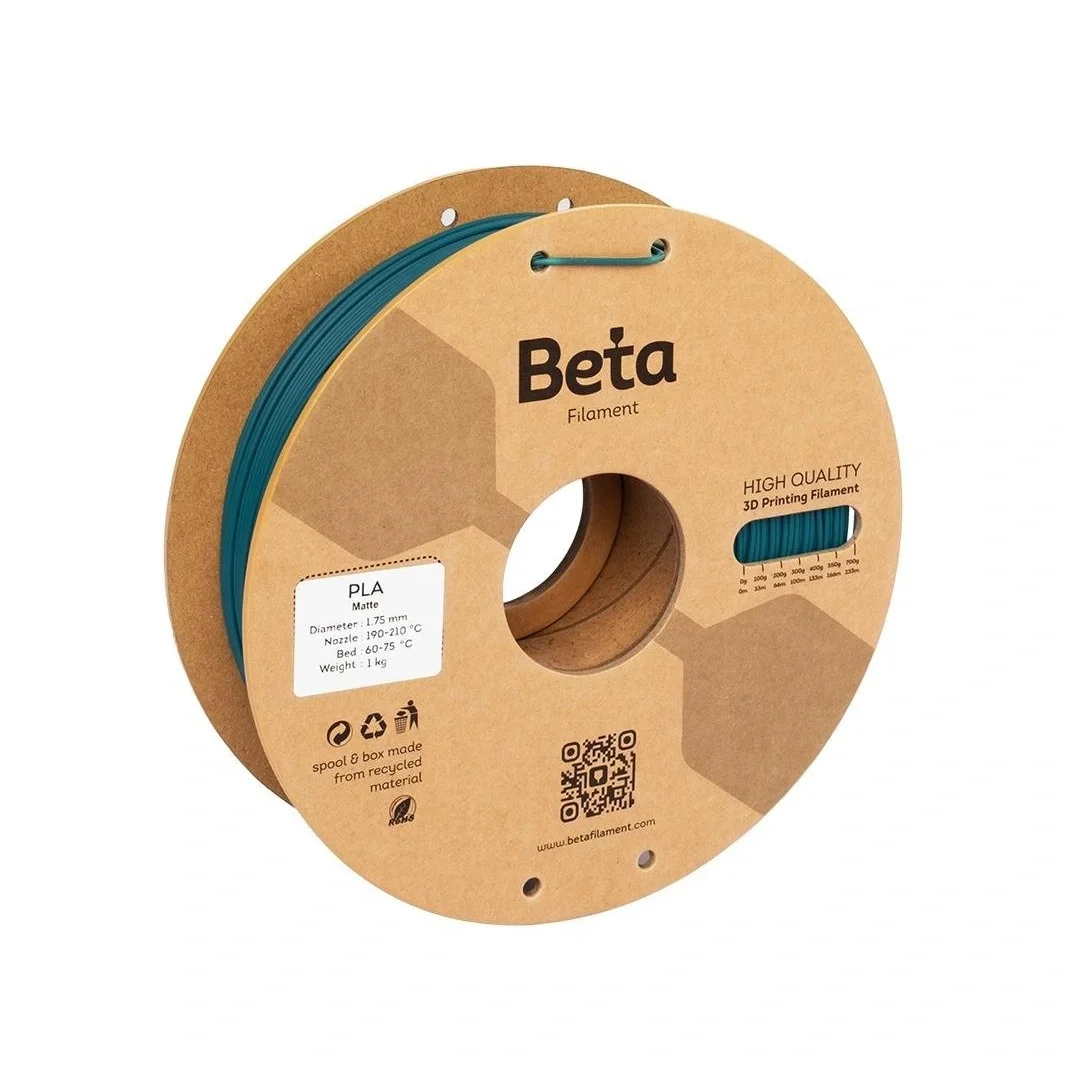 Beta PLA-Matte (Mat PLA+) filament, baskılarınızda yansımayı azaltan mat yüzey ve profesyonel bir görünüm elde etmeniz için geliştirilmiş özel bir PLA formülüdür. Özel mat katkı maddeleri sayesinde yüzey parlaklığını minimuma indirir, daha doğal, pürüzsüz ve zarif bir dokunuş sunar. Prototip, görsel sunum, dekoratif obje ve işlevsel parçalar için son derece uygundur.