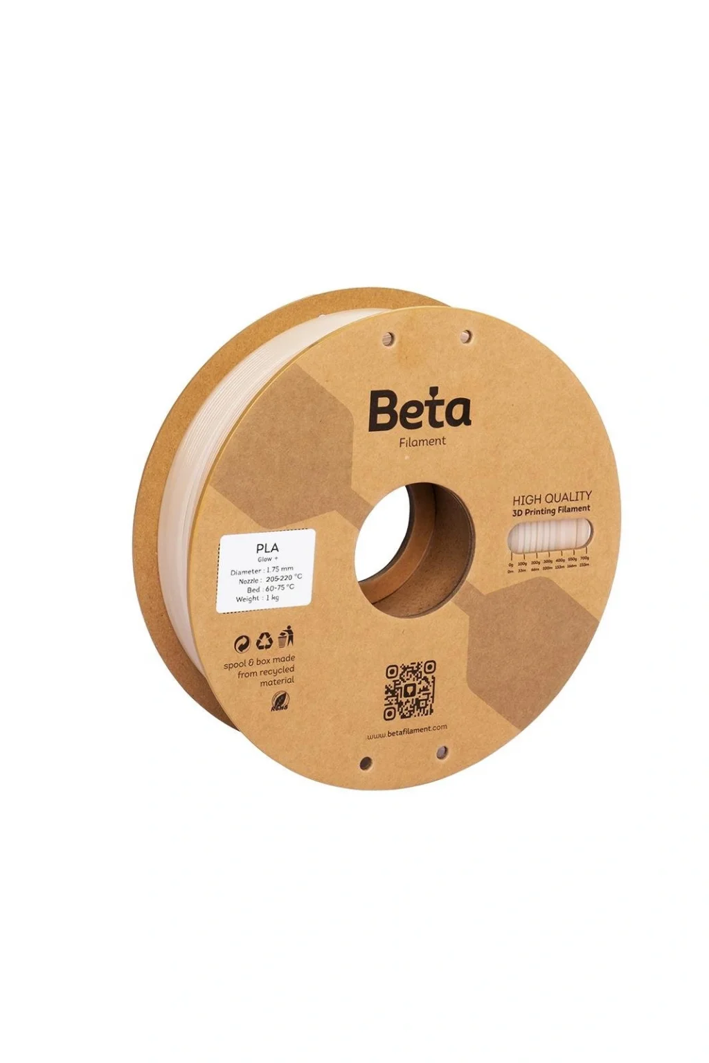 Beta PLA Ultra-Glow, saf PLA tabanlı, karanlıkta parlayan katkılarla güçlendirilmiş, pürüzsüz yüzey kalitesi ve kolay baskı performansı sunan bir filamendir. UV/ışık kaynağından enerji depolayıp düşük ışıkta görünür parlama sağlar; standart PLA ayarlarıyla uyumlu çalışır.