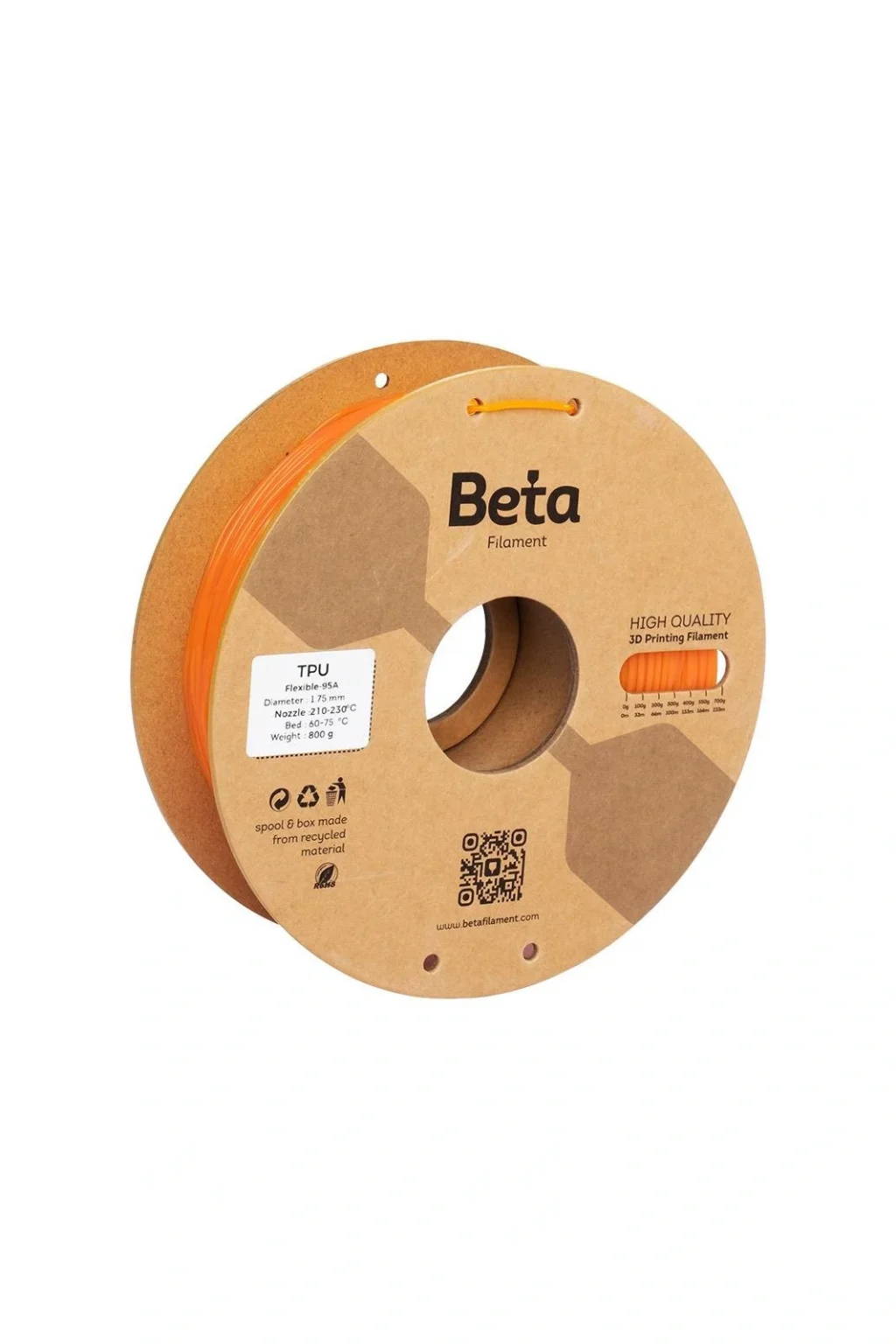 Yeni nesil Beta TPU Shore 95A Filament, esneklik ve dayanıklılığı dengede sunar. Zorlu mühendislik projeleri ve fonksiyonel prototiplerde yüksek aşınma direnci, darbe dayanımı ve kaydırmaz yüzey performansıyla öne çıkar.