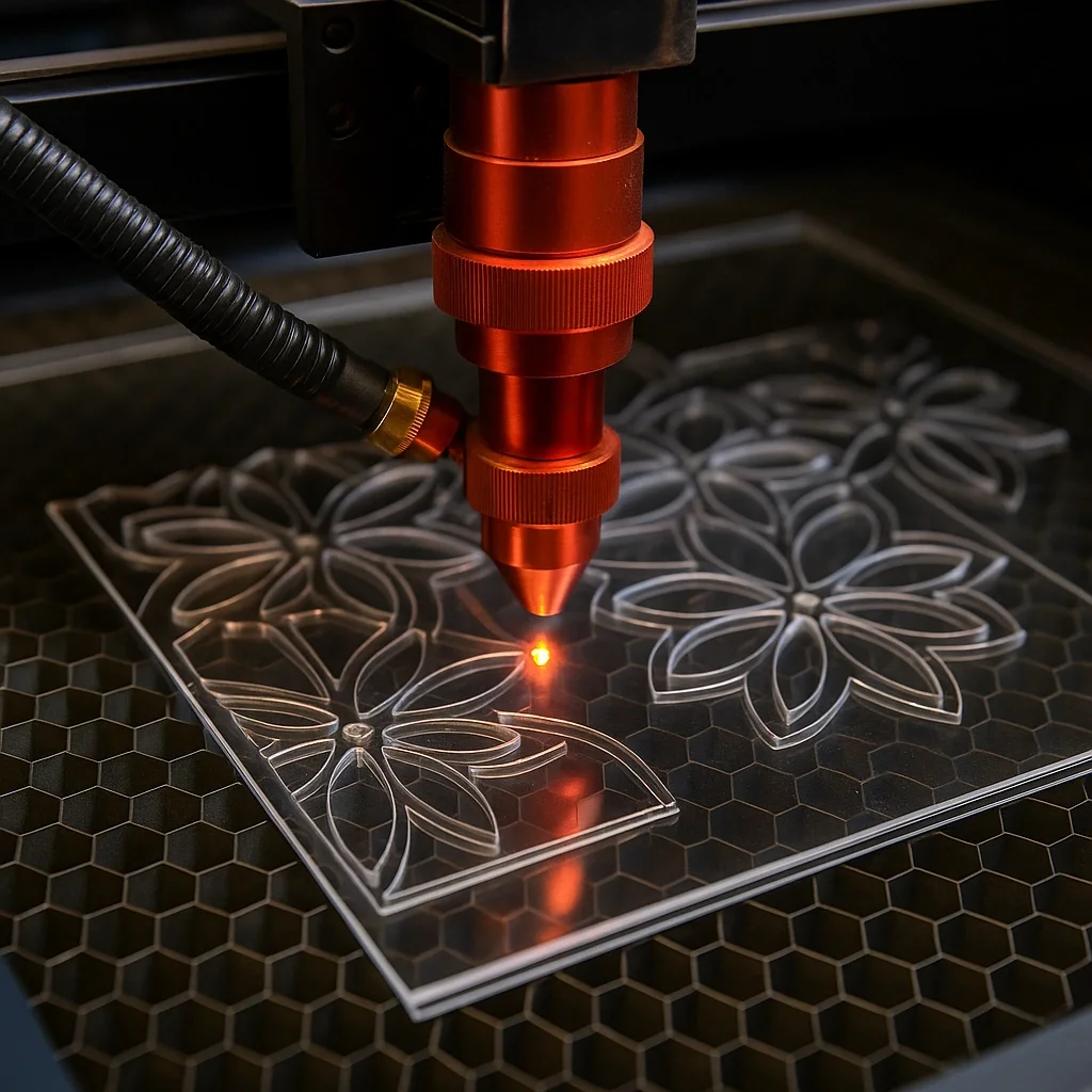 CO₂ lazer teknolojisi; ince detaylı tasarımlarda, küçük radyuslarda ve karmaşık geometrilerde bile net ve pürüzsüz kesim sağlar. Mekanik kesim yöntemlerine göre daha az çapak ve deformasyon oluştuğu için, ek zımpara veya düzeltme işlemlerine çok daha az ihtiyaç duyulur.