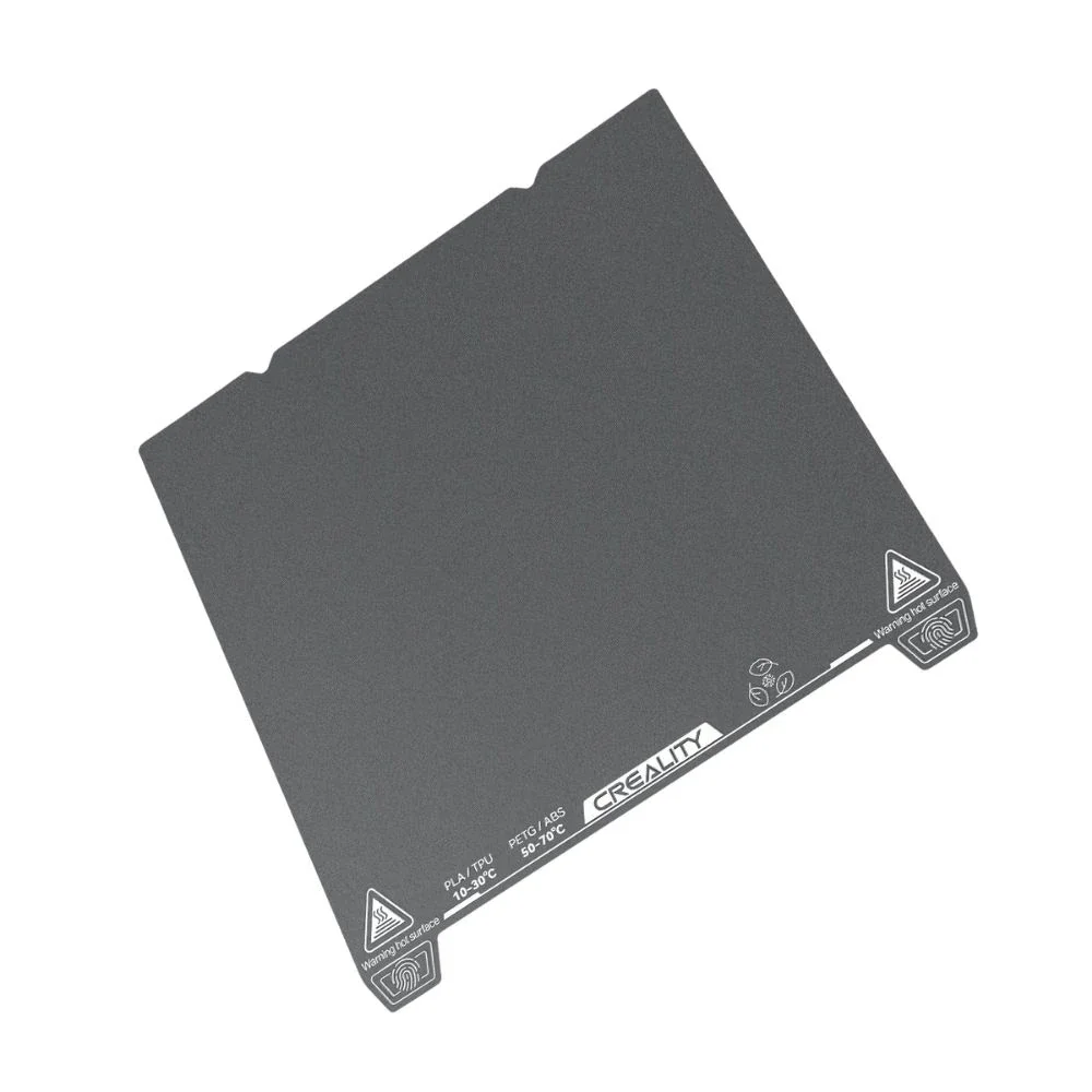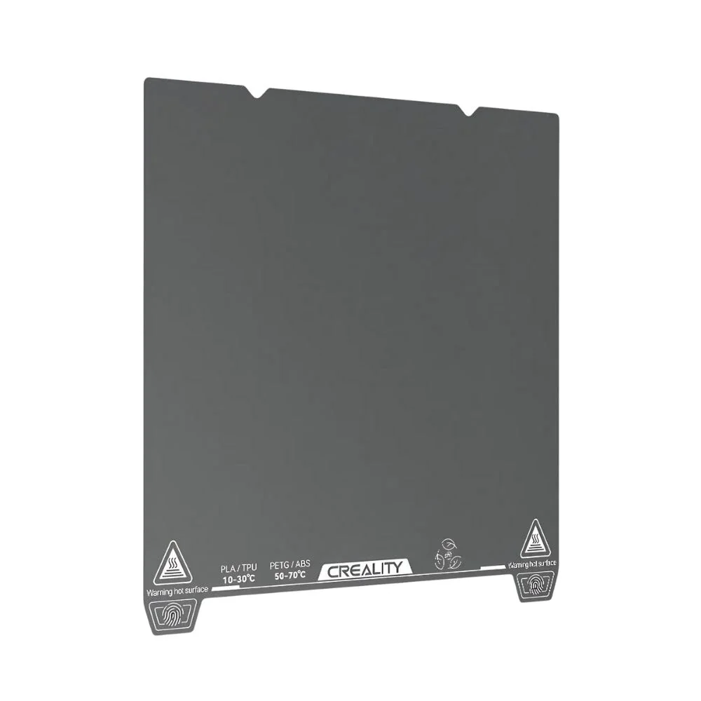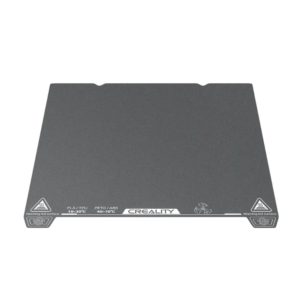 • Creality modelleri için tasarlanmış düşük sıcaklıkta güçlü yapışma sağlayan manyetik esnek çelik tabla; baskı sonrası bükülerek kolay model çıkarma imkânı sunar.