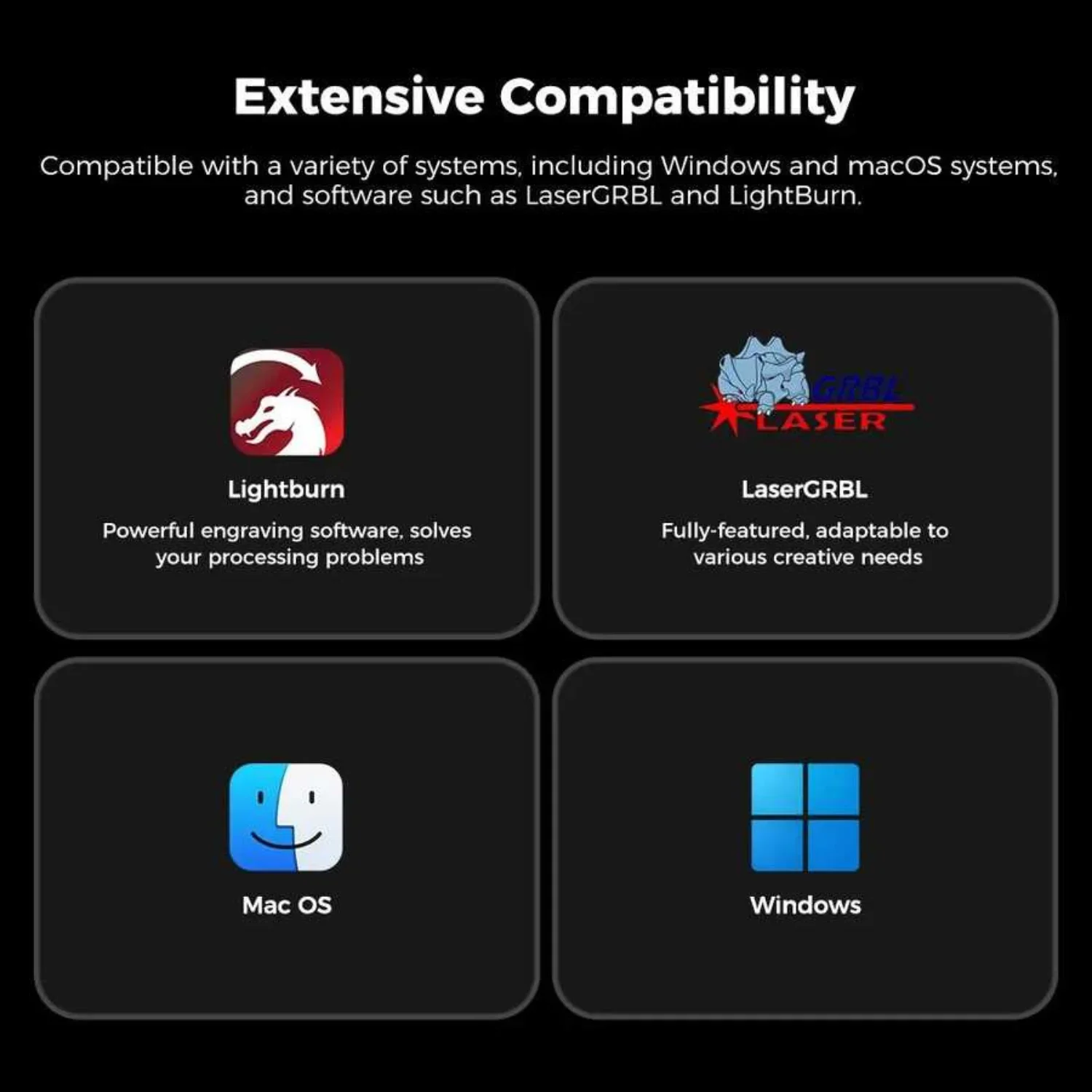 Yüksek Hız ve Hassasiyet: 22W modeline kıyasla daha hızlı kesim yapabilir ve maksimum 25.000 mm/dk gravür hızına ulaşabilir.