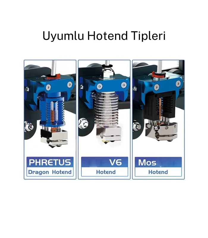E3D V6 ve V6 Volcano hotend'lerin kullanılması, Creality 3D yazıcıların baskı performansını artırır. Bu hotend'ler, yüksek sıcaklıklarda daha istikrarlı çalışma ve hızlı filament akışı sağlayarak detaylı baskılar ve üstün yüzey kalitesi sunar. Ayrıca, çeşitli malzemelerle uyumlu olmaları, kullanıcıların geniş bir yelpazede baskı yapmalarına olanak tanır, bu da genel baskı deneyimini iyileştirir.