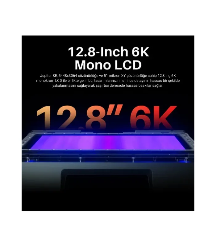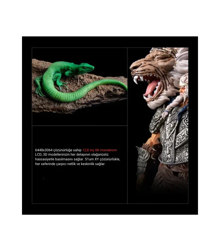 • Teknoloji: MSLA (Masked Stereolithography Apparatus),yüksek çözünürlüklü baskılar için idealdir.