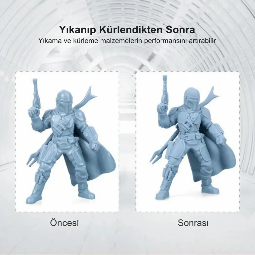 360° döner kürleme platformu ve yüksek güçlü UV LED kaynakları, modellerinizin her açıdan eşit kürlenmesini sağlar. Bu özellik, baskılarınızın detay ve dayanıklılığını en üst düzeye çıkarır.