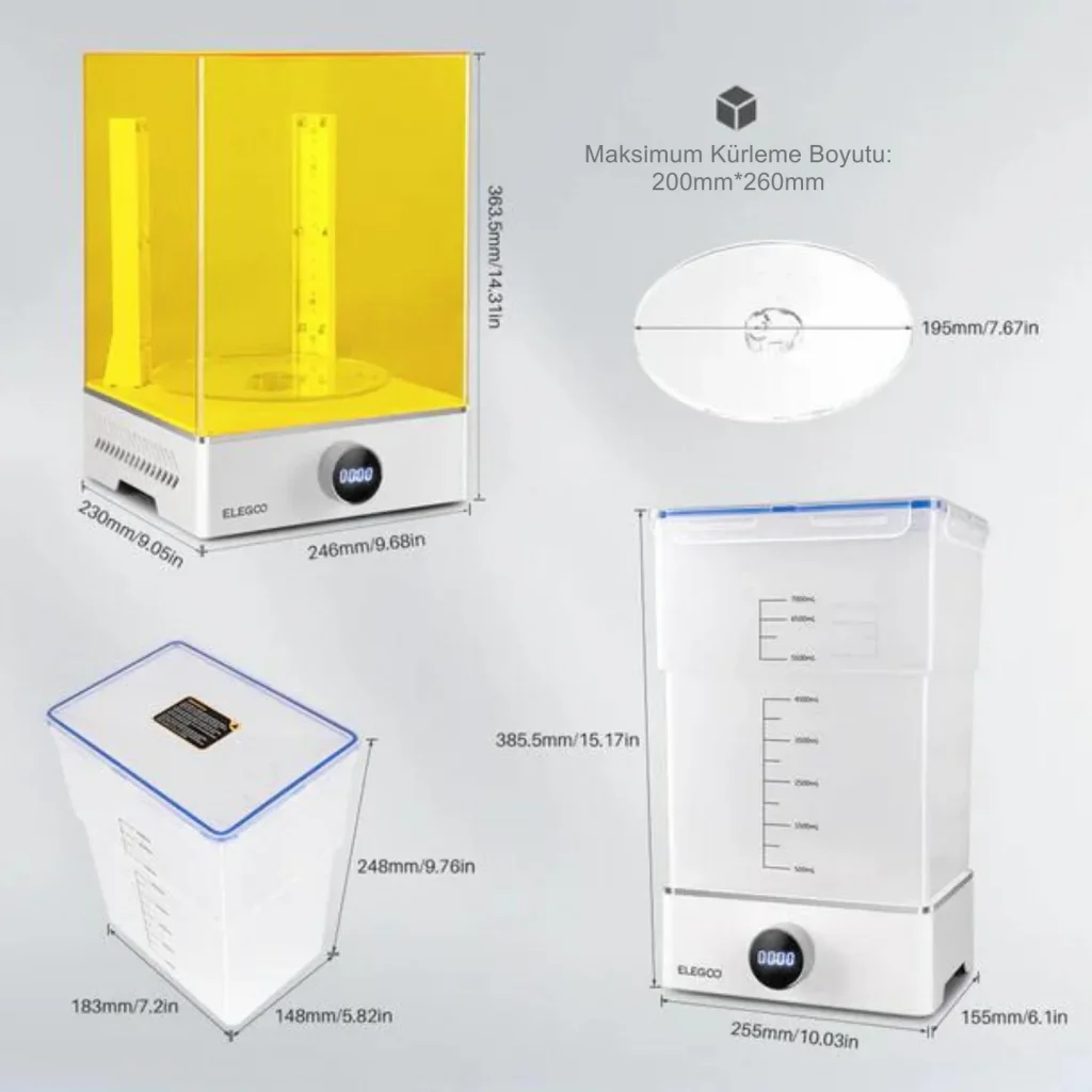 Yıkama tankı 180×121×153 mm (7.08×4.76×6.02 inç) ölçülerinde olup karmaşık ve büyük modellerinizi rahatlıkla işleyebilmenizi sağlar. Güçlü UV ışıkları kürleme sürecini hızlı ve eşit tamamlar.