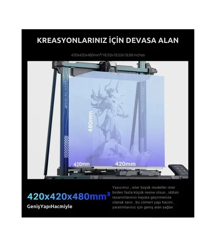 Elegoo Neptune 4 Max, 500 mm/sn baskı hızı ve 12000 mm/sn² hızlanma ile devrim yaratan bir FDM yazıcıdır. 420×420×480 mm yapı hacmi, büyük projelerinizde sınırları zorlamanızı sağlar.