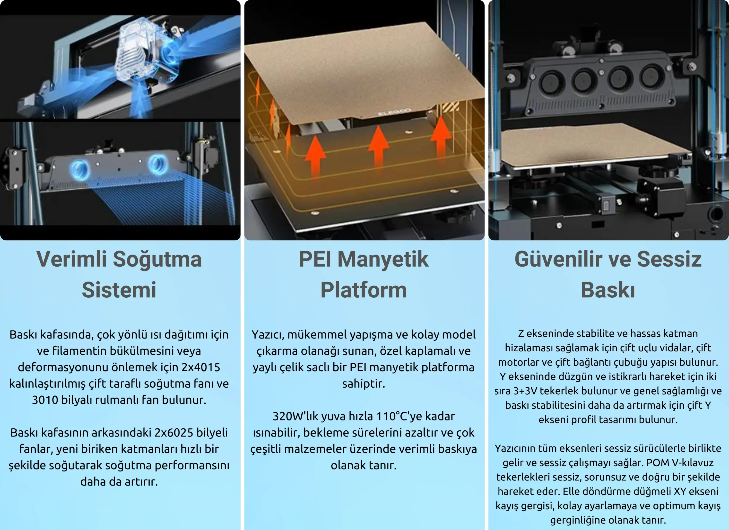 - Manyetik PEI platform (235×235 mm) ile kolay baskı alma