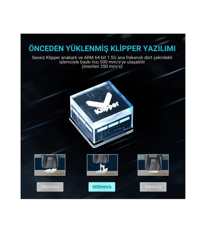 Elegoo Neptune 4 Pro, 500 mm/sn baskı hızı ve 12000 mm/sn² ivmelenme kapasitesi ile devrim niteliğinde performans sunar. Klipper desteğiyle input shaping ve pressure advance teknolojilerini kullanarak tutarlı ve hassas baskılar elde etmenizi sağlar.