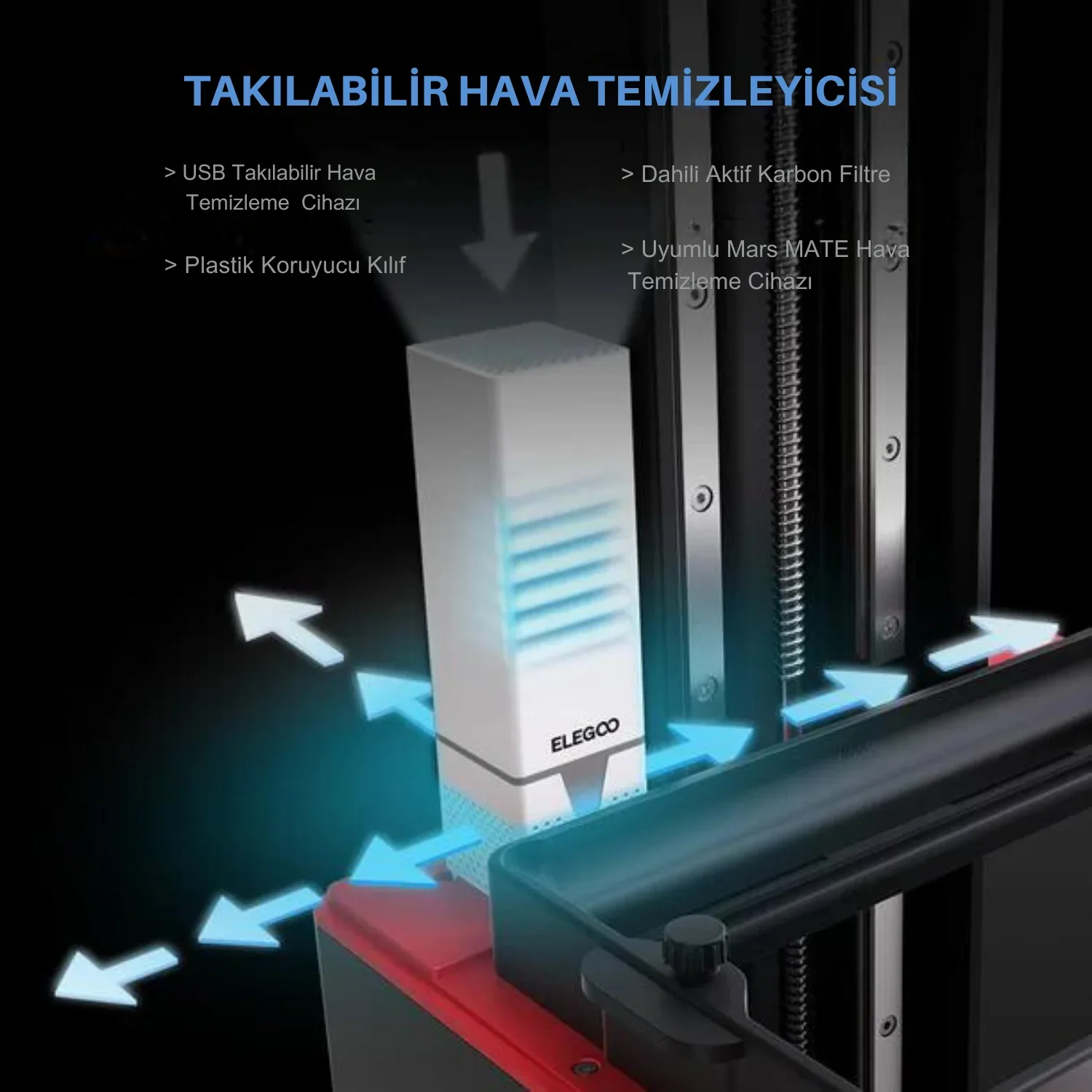Yerleşik aktif karbon filtre ve plastik koruyucu kılıflı USB takılabilir hava temizleyici, zararlı reçine kokularını giderir. Yakında sunulacak Mars MATE hava temizleyici, VOC’leri %95’e kadar azaltma kapasitesine sahiptir.