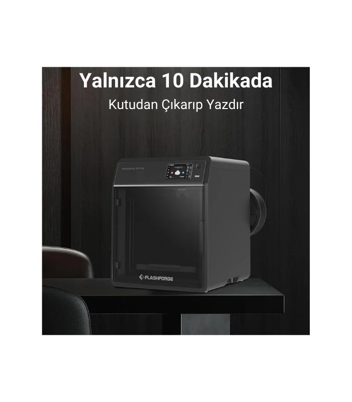 10 Dakikada Kurulum ve Başlangıç: Flashforge Adventurer 5M Pro, kutudan çıkışından itibaren sadece 10 dakika içerisinde baskı yapmaya başlayabileceğiniz şekilde tasarlanmıştır. Yeni başlayanlar ve çocuklar için ideal olan bu kolay kurulum süreci, 3D baskı dünyasına adım atmanızı kolaylaştırır.