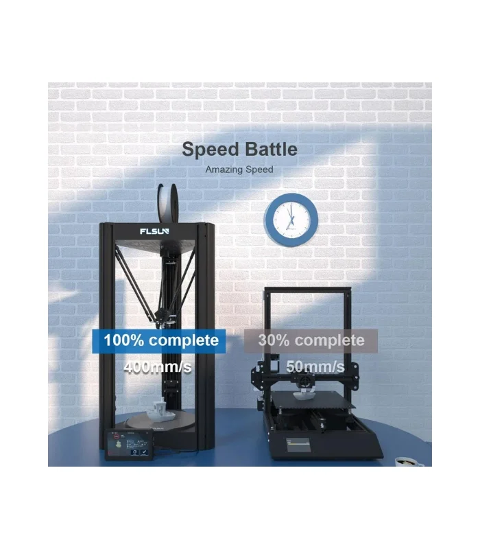 FLSUN markasının SR modelinden sonra hız üzerine yoğun çalışması sonucu kalite kaybı yaşanmaksızın çıkarmış olduğu V400 modelidir. FLSUN v400, 400 mm/s yüksek hızlı baskı elde etmek için bir delta yapısıyla bağımsız olarak geliştirilmiş ve diğer 3D yazıcılara kıyasla baskı süresinde 70'ten fazla tasarruf sağlamaktadır. Klipper bellenimi önceden yüklenmiştir, kullanımı basit ve kullanışlıdır ve yeni bir akıllı etkileşimli deneyim sunmaktadır.