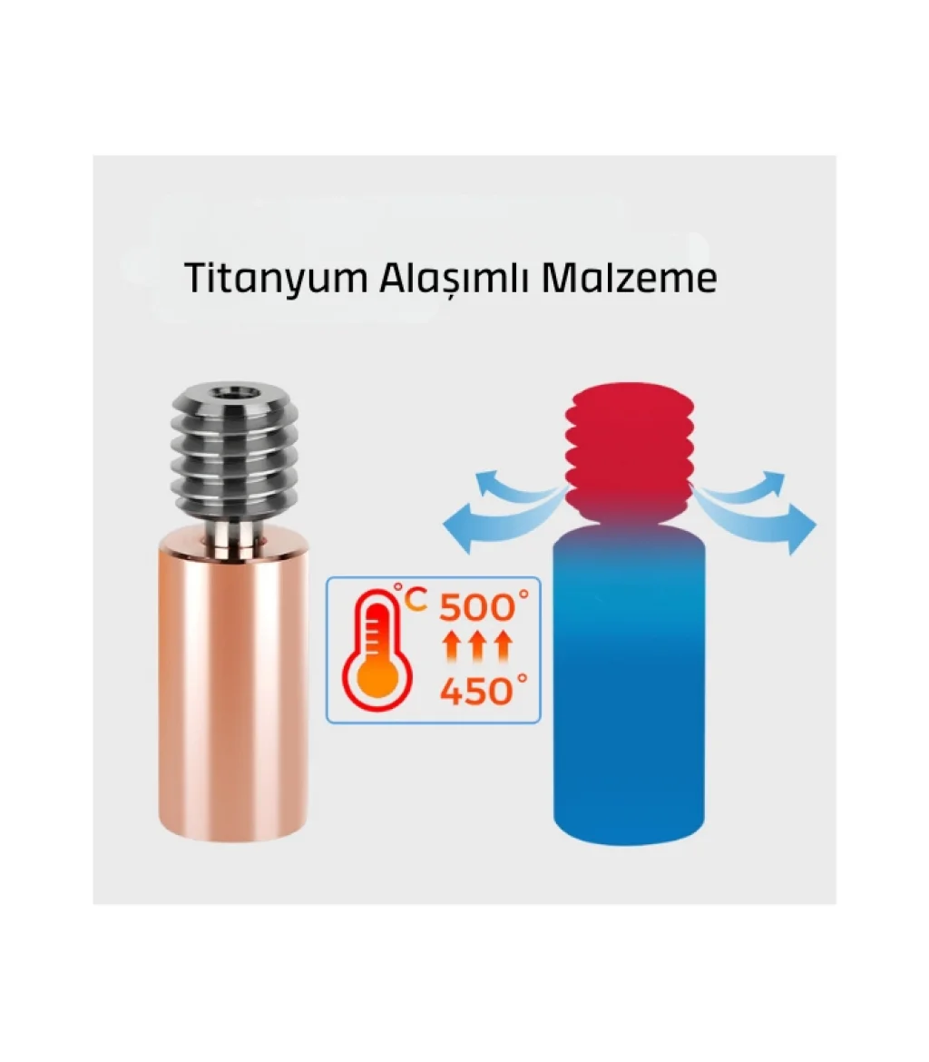 • Yüksek Performans: Titanyum bareller, daha pürüzsüz bir filament akışı ve daha az tıkanma ile sonuçlanan daha yüksek kaliteli baskılar sunar. Bu, kullanıcıların daha tutarlı ve memnuniyet verici sonuçlar elde etmelerini sağlar.