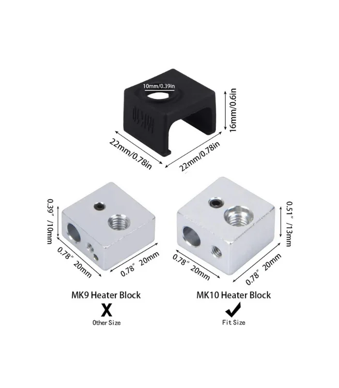 1 Adet MK10 Alüminyum Isıtıcı Blok Silikon Çorap/Hotend Çorabı - Siyah