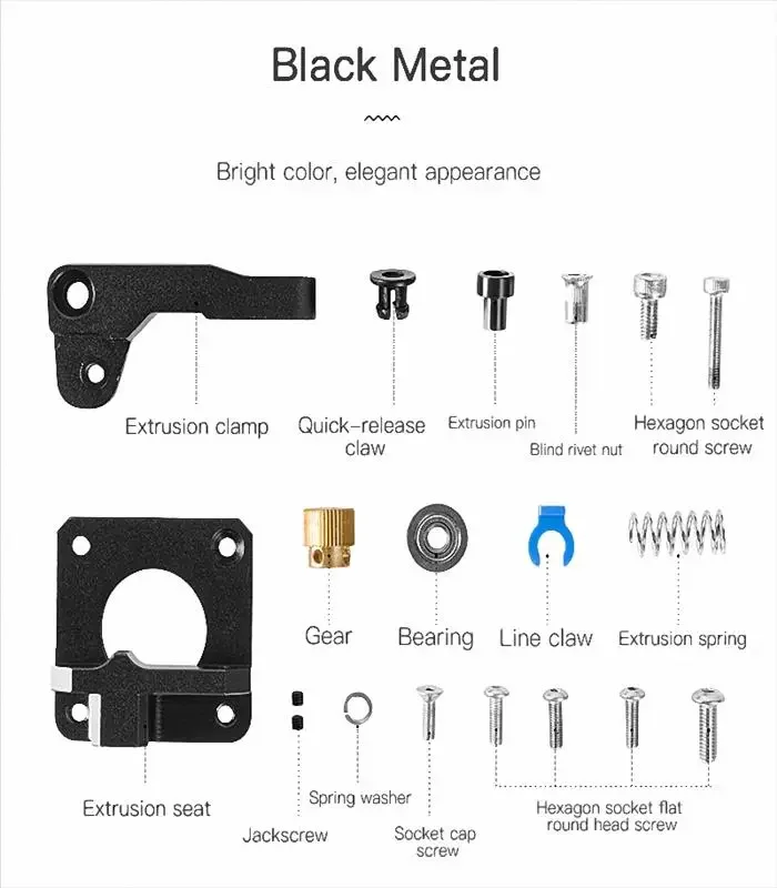 Özellikle Creality serisinde plastik olarak gelen extruderların zamanla değişmesi gereklidir. Aliminyum alaşımlı metal extruder ile cihazınızı upgrade edebilirsiniz.