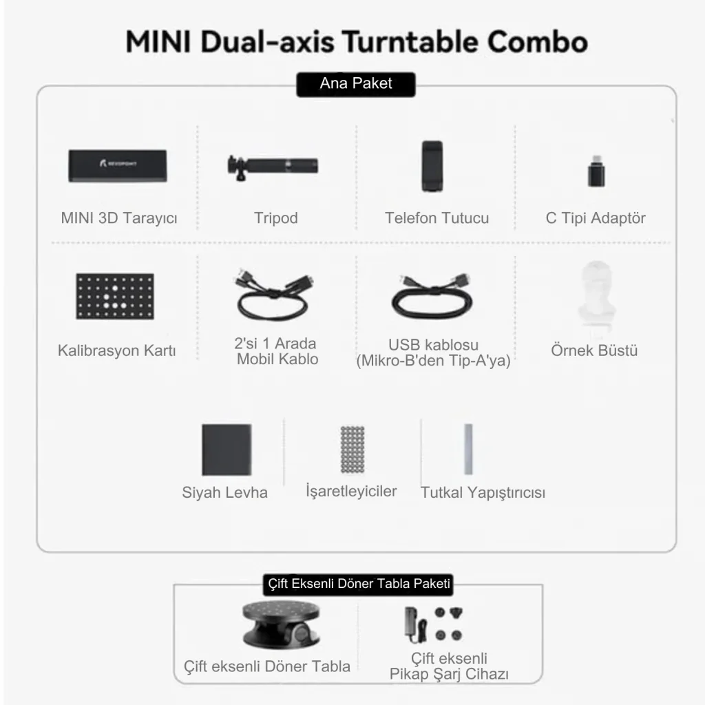 - 1 adet Revopoint MINI Dual Axis Turntable 3D Tarayıcı