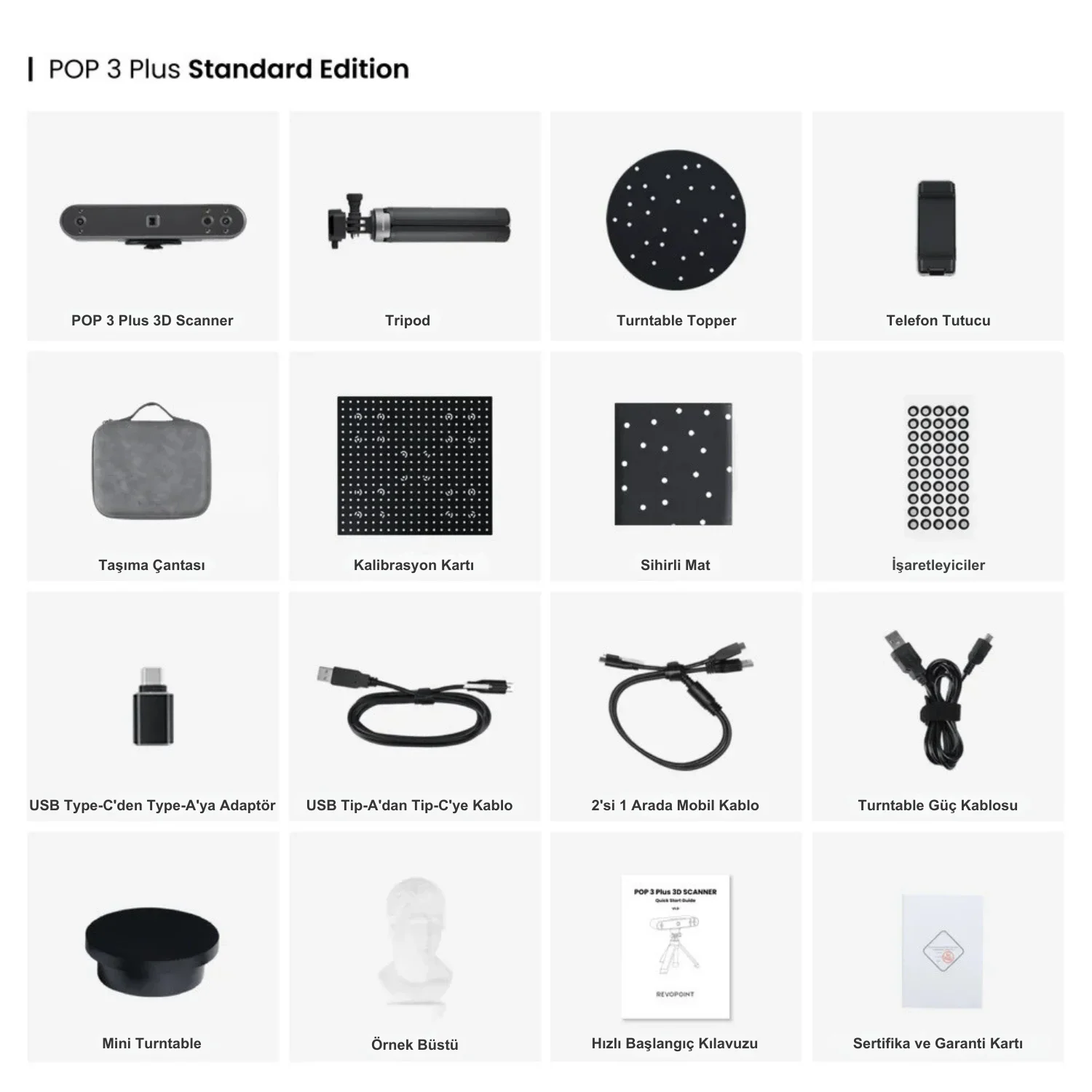 - 1 x Revopoint POP 3 Plus Standart Paket 3D Tarayıcı